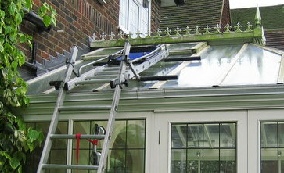 Clean out all guttering around the conservatory - including any boxed or valley gutters - and checking that downpipes drain freely.